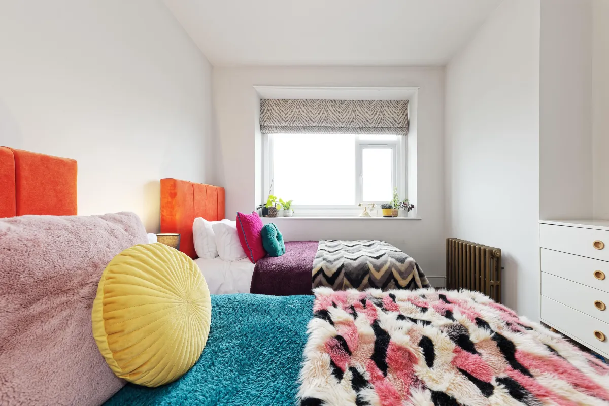 Sleep in one of our colourful bedrooms on comfortable beds snuggled in hotel quality linen with plenty of throws. Choose from three bathrooms, ensuring there’s never a big queue to wash.
