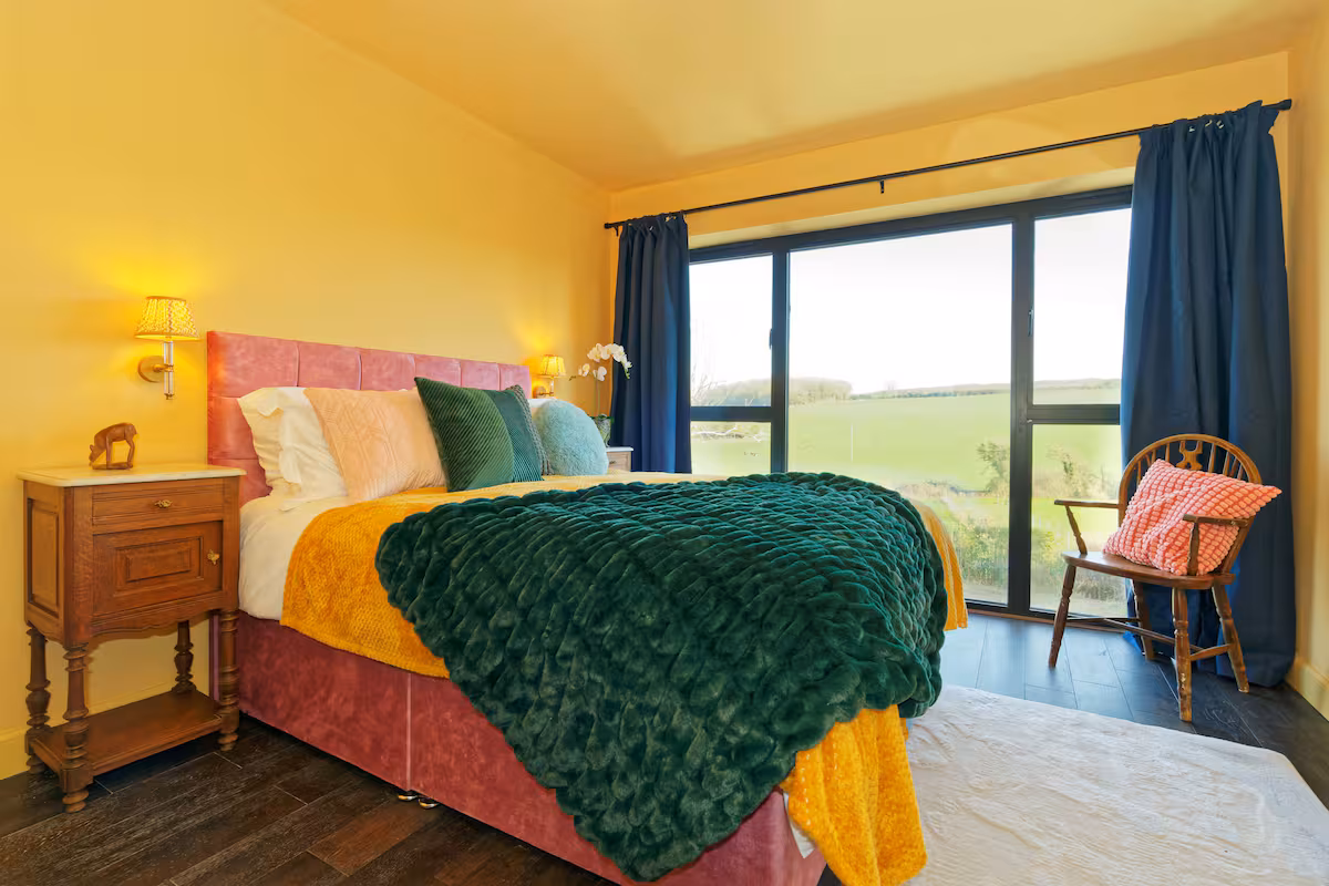 Our cottage boasts a generous open-plan living area with stunning views across the Kent Downs . Featuring four cozy bedrooms —three with plush hotel-quality king-size beds and one versatile twin/single that can convert into a king—there's ample space for everyone. Wake up to breathtaking views from the main en-suite bedroom, with massive picture windows framing the serene landscape.